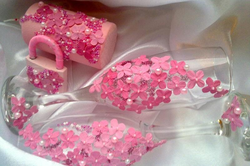 • подвязки, подушечки для колец, бокалы, замочки, кулёчки, сундуки и многое другое;