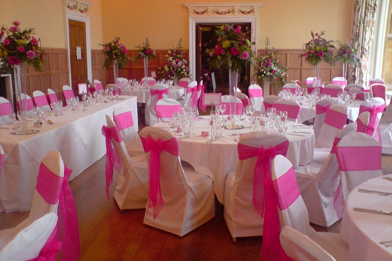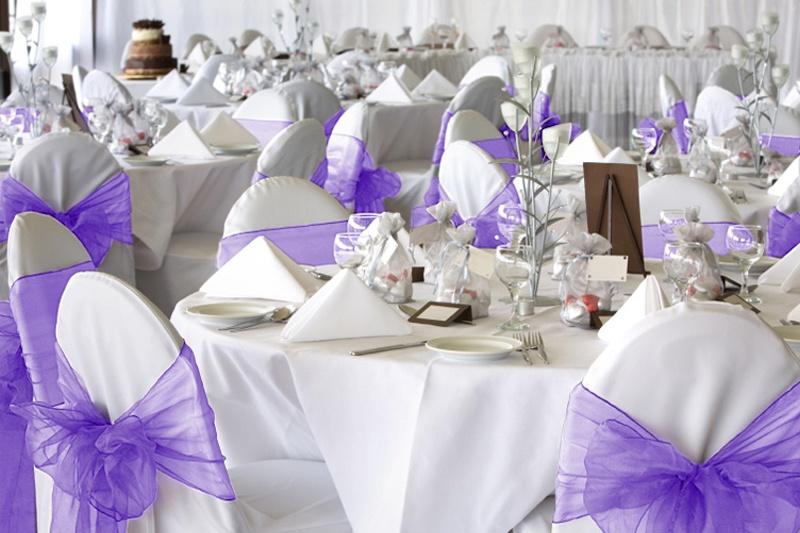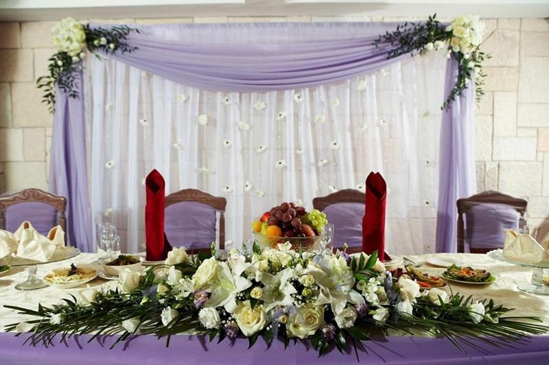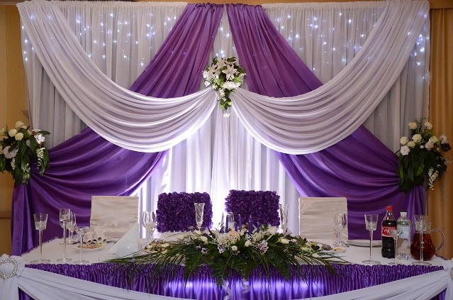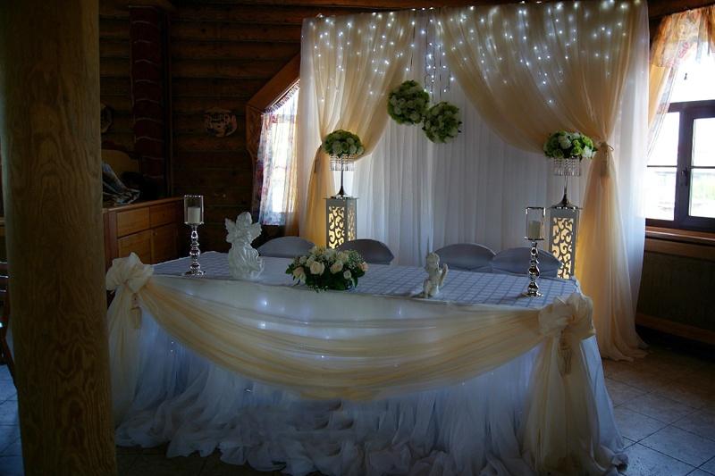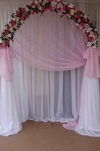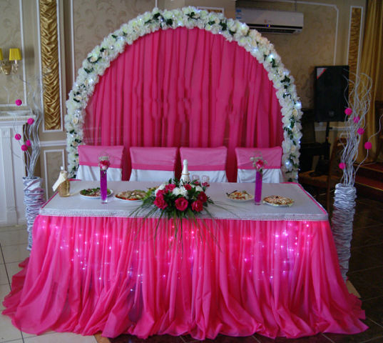 • по оформлению банкетного зала и выездной регистрации (арки, чехлы, скатерти на столы).