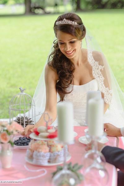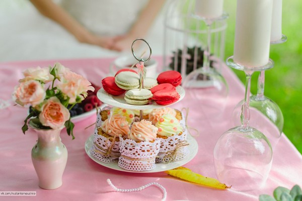 Предлагаем вам авторский проект для фотосессий — царский свадебный пикник с богато сервированным столом, украшенным романтическими декорациями и цветами, собранными в причудливые ажурные букеты.