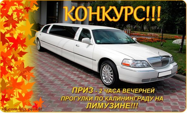 Дорогие друзья, спешим вас порадовать новым конкурсом. Приз — двухчасовая вечерняя прогулка по Калининграду на лимузине.