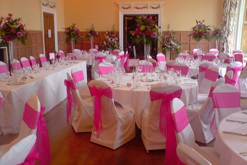 • по оформлению банкетного зала и выездной регистрации (арки, чехлы, скатерти на столы).