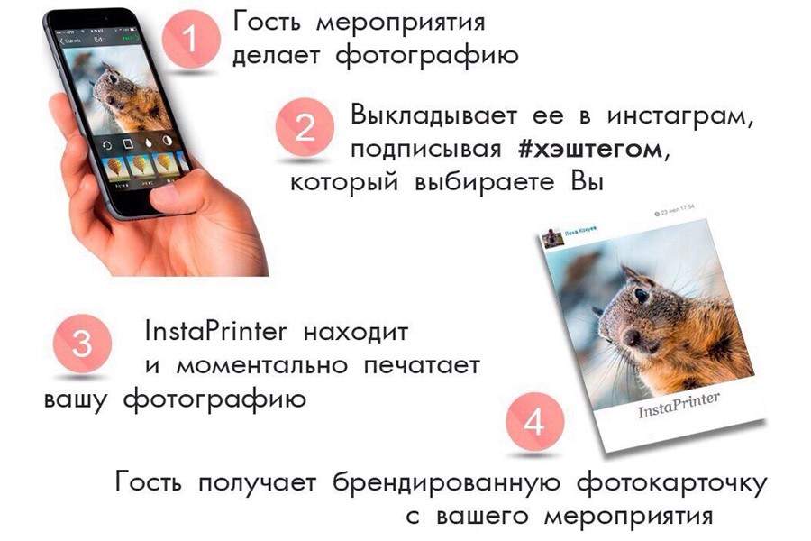 Практически на каждой свадьбе кто-нибудь из гостей делает фото на телефон и, помечая их тегами, отправляет в «Instagram». Эти снимки можно просмотреть с помощью мобильных устройств или компьютера. Но не многие знают, что фотографии из «Instagram» можно распечатать прямо во время свадебной церемонии! Агентство «EventGroup39.ru» предлагает в аренду оборудование для моментальной печати инстаграм-снимков — инстапринтер. Этот удивительный аппарат, который помещается на небольшом столе, станет настоящим развлечением для гостей церемонии. После того как они отправят в «Instagram» снимок с определенным #хэштегом или с заданной геолокацией, инстапринтер за 30 секунд найдет и распечатает эту фотографию, оформив ее в стиле свадьбы. Кроме этого, последние снимки, загруженные в инстапринтер, можно вывести на проектор или плазменный экран. А после окончания мероприятия есть возможность сохранить все фото на диск или флеш-накопитель. Корпус инстапринтера подсвечивается изнутри, причем цвет молодые могут выбрать заранее, исходя из оформления своей свадьбы. Инстапринтер — идеальное предложение для молодоженов, которые хотят удивить и порадовать своих гостей. Стоимость аренды принтера — от 6 тыс рублей.