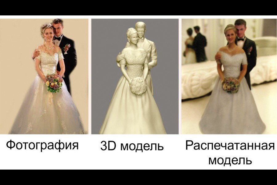 Компания «3dYouAndMe» предлагает молодоженам сделать точные цветные копии себя, своих родных или гостей. Реалистичные 3D-модели людей размером до 25 см можно использовать для оригинального оформления фотозоны или банкетного зала. А изящные 3D-статуэтки молодых станут необычным украшением свадебного торта. Специалисты компании изготавливают 3D-фигуры двумя способами. Первый — это создание 3D-модели по фотографии. На специальный сервис молодожены могут загрузить до пяти фотографий, по которым мастера «3dYouAndMe» выполнят и распечатают на 3D-принтере модели необходимого размера. Срок изготовления фигур по фотографиям составляет две недели. Второй способ — это безопасное бесконтактное сканирование. Молодые могут пройти его в специальном отделении компании. Преимущество этого способа в том, что на создание 3D-модели уходит всего 20 минут, и уже на следующий день молодожены могут забрать свой заказ. Цены на 3D-модели зависят от размера фигурок и варьируются от 9 980 рублей за две фигурки высотой 9 см до 49 980 рублей за две модели высотой в 25 см. К свадьбе молодожёны предпочитают заказывать фигуры высотой 15 см. Две такие модели обойдутся в 18 527 рублей. В качестве свадебного подарка компания «3dYouAndMe» дарит молодоженам скидку в 15% от стандартной цены. Молодые могут ознакомиться с уже готовыми моделями, их подробным описанием и ценами на сайте.