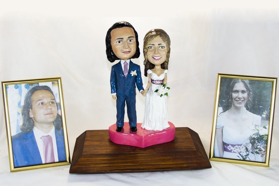 Очень необычным и веселым подарком молодоженам станет кукла-шарж ручной работы. Статуэтка с немного увеличенной портретной головой смотрится красивее и более узнаваемо, чем фигурки с правильными пропорциями тела. Кукла-шарж изготавливается из полимерной глины по фотографии и имеет поразительное сходство с оригиналом. Через «Личный кабинет» на сайте компании клиент контролирует процесс работы над куклой: лепку головы, лепку тела и покраску конечного изделия. Фигурка может быть выполнена в виде одиночной, парной или семейной композиции. Оригинальная статуэтка молодоженов в день торжества украсит свадебный торт или машину новобрачных, а после останется милым сувениром, напоминающим о свадьбе. Для церемонии можно заказать куклу размером от 18 см до 40 см. Срок изготовления — от 3 дней с момента оформления заказа. Цена одиночной статуэтки из каталога компании начинается от 7 тыс рублей, эксклюзивная одиночная или парная фигурка будет стоить от 12 тыс рублей. Участникам групп компании в соцсетях предоставляется скидка в размере 5%, а читатели «Нового Калининграда.Ru» при заказе статуэтки получат 10%-ю скидку. Профессиональные дизайнеры и художники-скульпторы компании «Кукла-Шарж.рф» с любовью подходят к своей работе и гарантируют высокое качество исполнения именных статуэток. В свое время клиентами компании были звезды шоу-бизнеса и руководители крупных компаний: Денис Клявер («Чай вдвоем»), Ольга Бузова («Дом 2»), Алексей Катков (директор «Mail.Ru Group») и многие другие.