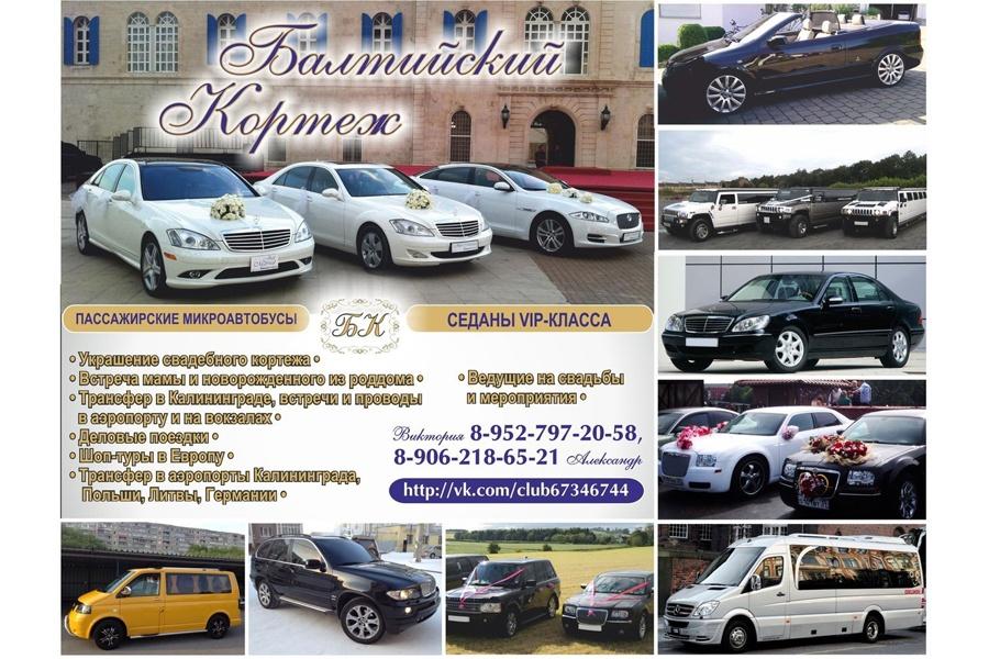 Компания «Балтийский кортеж» работает на калининградском рынке свадебных услуг уже давно. За это время организация не только сформировала солидный парк автомобилей и микроавтобусов, но и добилась высокого уровня профессионализма своих водителей и качества оказываемых услуг. На сегодняшний день компания имеет огромный опыт в организации свадебных кортежей, встреч из роддома, деловых поездок и